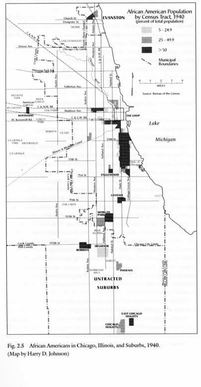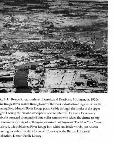 Unlike in the postwar period, in the century’s early decades, working class blacks established suburban communities. Wiese divides them into two categories, each reflecting occupational realities: industrial and domestic service suburbs. Occupational differences resulted in sharply gendered suburbanization. Industrial suburbs featured majority male populations while the opposite was true of domestic service communities. This in turn affected leisure, local environment, work, migration, and support/kinship networks. For example, industrial suburbs offered Black women few employment opportunities, thus many, like white ethnics in the nation’s cities, took on lodgers. In contrast, Black men in domestic suburbs struggled to find work. The physical environment differed as well. Domestic service suburbs often located themselves in proximity to leafy affluent white communities while their industrial counterparts frequently featured rougher conditions as factories lacked the benefits of middle and upper class white neighborhoods. Predictably, the type of work breadwinner’s engaged in differed as well. Factory employment dominated industrial enclaves such as Detroit’s River Rouge while domestic service provided economic sustenance in places like Evanston, Illinois.