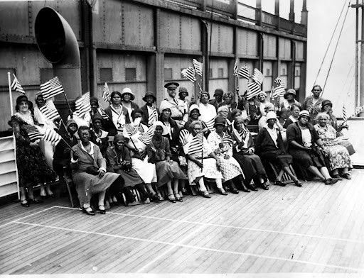 Still, Plant’s Gold Star example also illustrates the complexity of this process when race intervenes. Amazingly, when one considers the prejudices of the day, the Gold Star Program included African American women. Yet Black women found themselves predictably segregated from their white counterparts. Moreover, they enjoyed far better accommodations when in France than stateside. The government found itself in an awkward position as it tried to resolve contradictory impulses. Though the mothers served a patriotic function, advertising American “munificence,” the U.S. government also felt a need to maintain the “racial construction of the all-American war mother,” a construction that frequently, if not always, excluded black women. The government’s inability to “treat the black pilgrims as ladies” resulted in negative reaction within the Black press, which Plant points out felt slighted on two levels. “It is impossible to say which outraged the black community more – the violation of the women’s rights or the social slight against them, for the gendered construction of citizenship made the two offenses indistinguishable,” she writes. (69) Black war mothers who took the opportunity went out of their way to deflect these criticisms by emphasizing that the program did treat them like ladies. This failed to appeal to large segments of the Black community who submitted that these mothers had failed. Black mothers were expected to instill and nurture racial pride in their children, and by accepting the Gold Star Program in its segregationist orientation these women had undermined that process. The Chicago Defender listed the names and towns of the first group of pilgrims in 1930 with the headline, “Their Sons Died for Segregation.”
