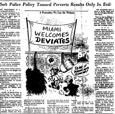 Few nightclubs in the America’s could claim the notoriety and clientele of pre-revolutionary Havana’s Tropicana. From the sultry Josephine Baker to the paranoid Joseph McCarthy, the club’s patrons only reinforced its international standing. Sitting 90 miles from Cuba, Miami hoped to capitalize on the island nation’s connection to the US by depending on an ethno-racial sexuality that linked it to Havana and other Caribbean metropolitan destinations. In this matrix, Miami club and cabaret owners promoted “brassy Latin music” and the city itself as a “wide open town” town and capital of Latin America. Miami wasn’t an American city, it was the city of the Americas in America. Boosters marketed race, ethnicity, and sexuality and promoted an economy based on sexual titillation and degeneracy, which of course, represented a stark contrast and challenge to the era’s conservative heteronormative culture.